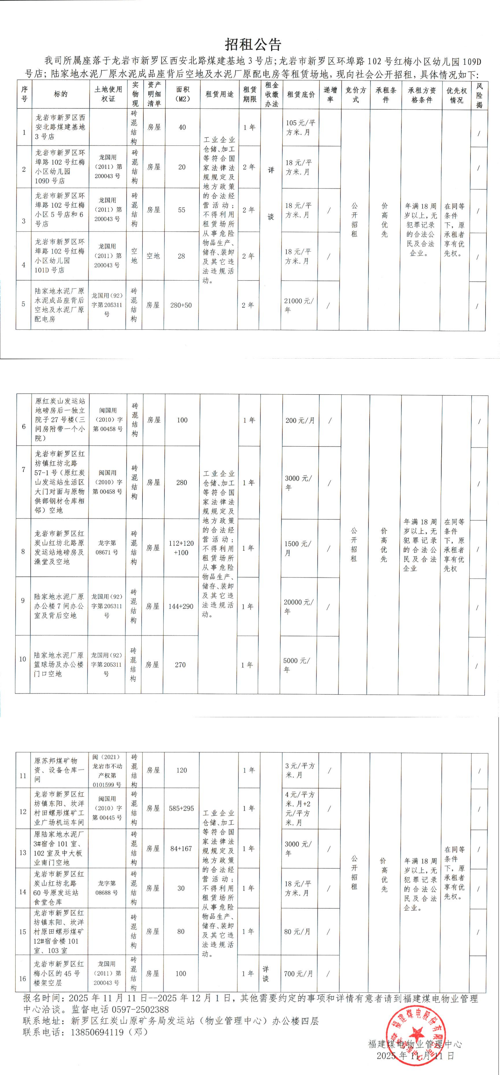 招租公告(11月)