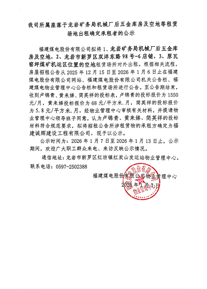 信息来源:福建煤电股份有限公司 发布时间: 2026-01-07