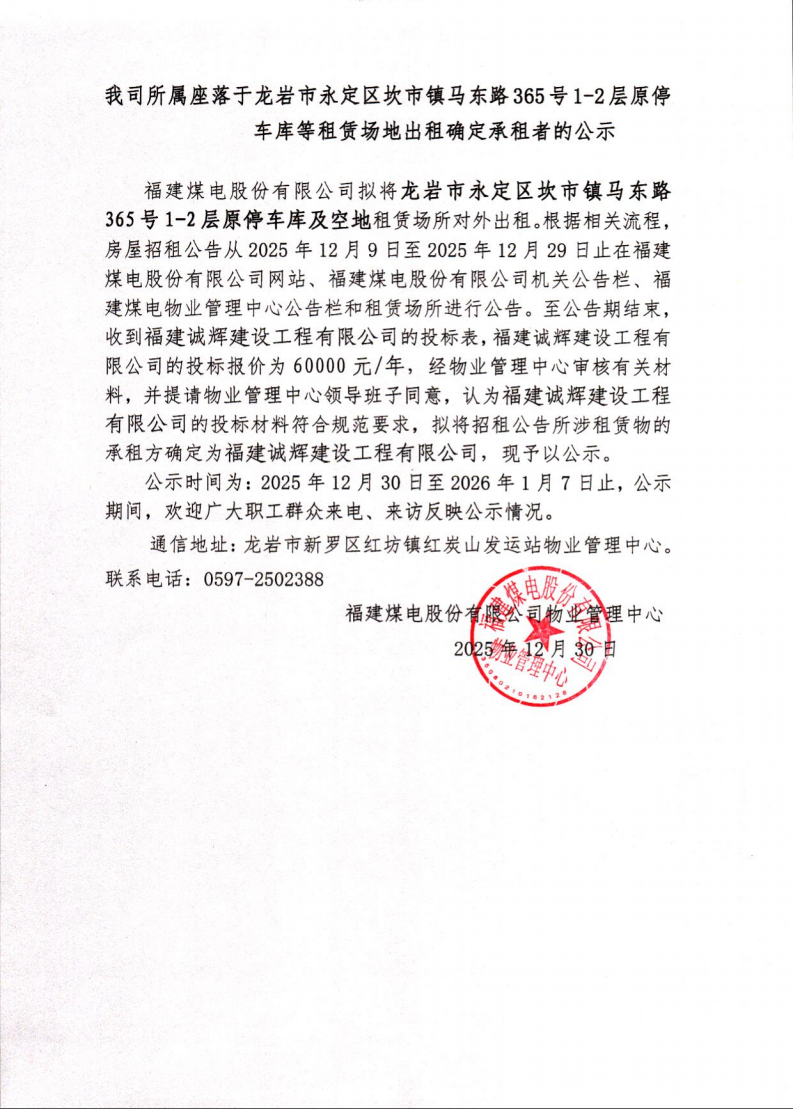 信息来源:福建煤电股份有限公司 发布时间: 2025-12-30