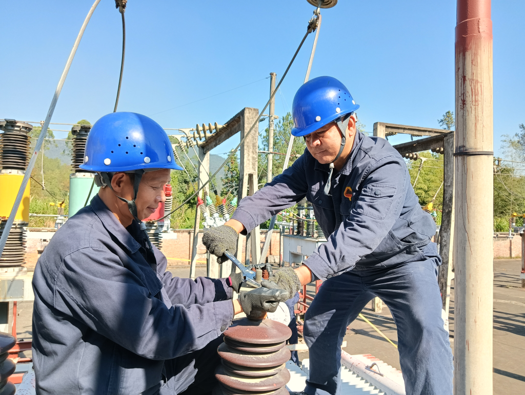 图为12月10日工作人员在35Kv铜锣坪变站进行变压器检修操作。(陈先英)